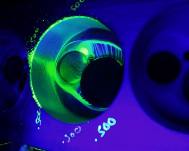 Before florescent wet flow testing the only way to visualize the wet flow in the chamber was with colored water. The colored water would show some of the large wet area's of the chamber and that was about it. Some utilized strobe lights or high speed / slow motion photography as well as other methods in order to better visualize the wet flow vortices and trails in the chamber. The information gathered was not very useful and most people who ventured down this road simply gave up and dismissed the wet flow bench all together. Then came Joe Mondello and Lloyd Creek. At the 2000 AETC conference Joe asked me what I thought of wet flow benches. I told him that I felt they could be a useful tool but gathering any form of useful data from the machines was difficult. They are mainly a visualization tool and a very poor one at that.